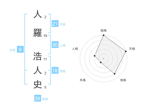 人羅 浩人史さんの総格は39画の5点!