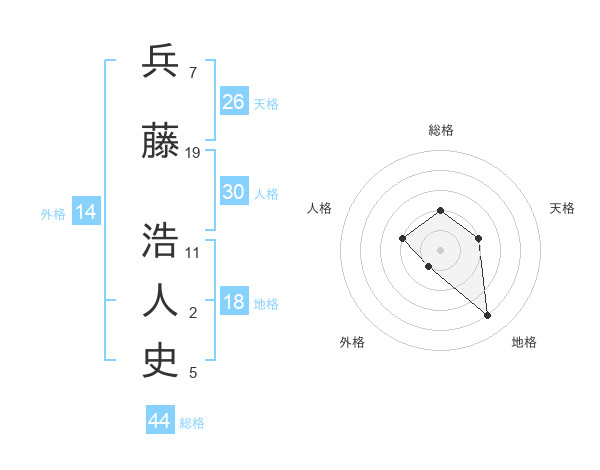 兵藤 浩人史さんを姓名の画数から五運を鑑定