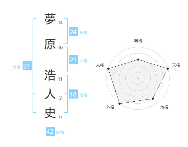 夢原 浩人史さんの天格は24画の5点!