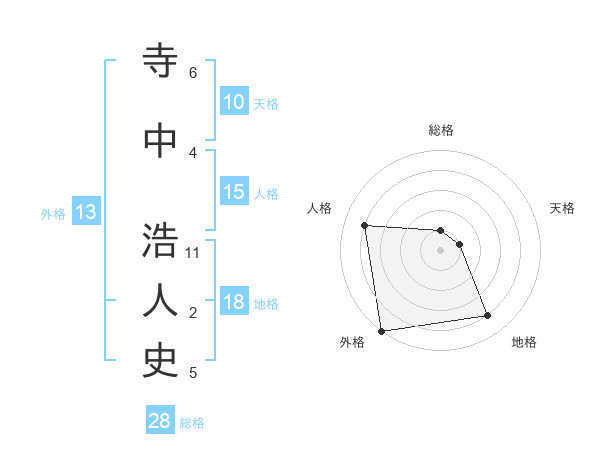 寺中 浩人史さんを姓名の画数から五運を鑑定