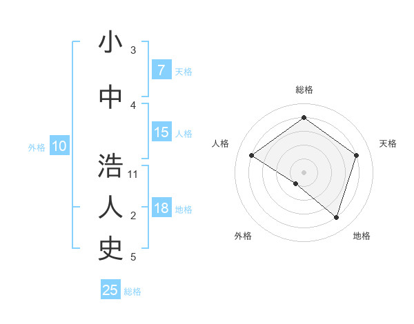 小中 浩人史さんの総格は25画の4点!