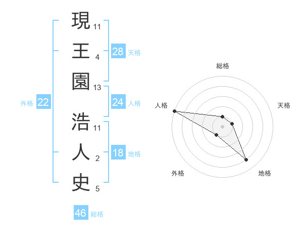 現王園 浩人史さんを姓名の画数から五運を鑑定