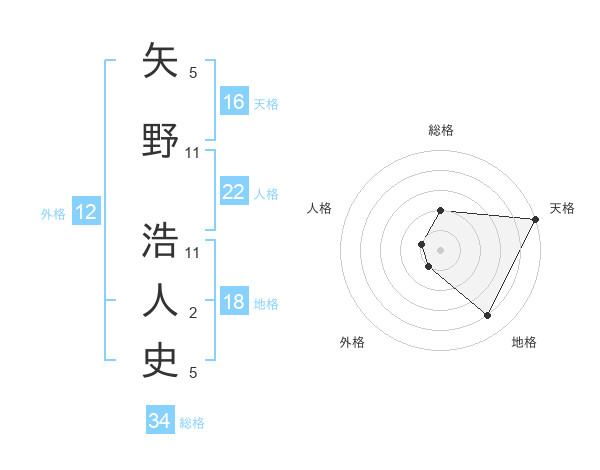 矢野 浩人史さんを姓名の画数から五運を鑑定