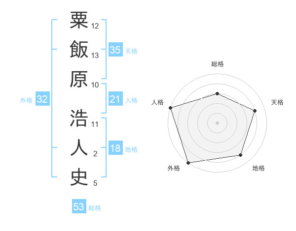 粟飯原 浩人史さんを姓名の画数から五運を鑑定