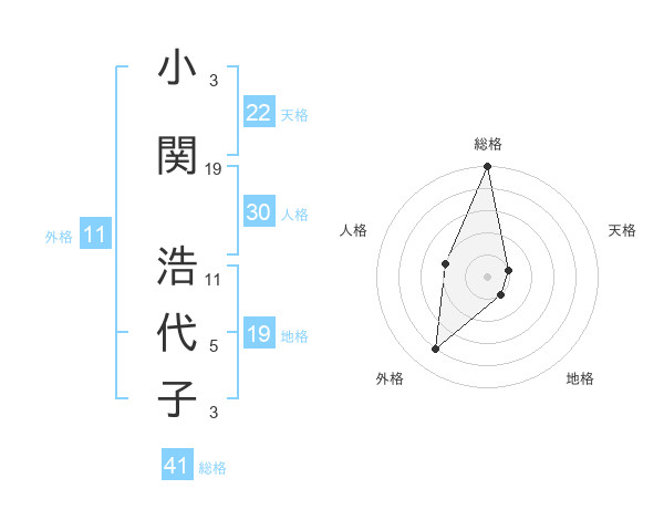 小関 浩代子さんを姓名の画数から五運を鑑定