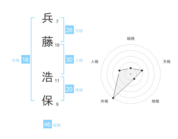 兵藤 浩保さんを姓名の画数から五運を鑑定