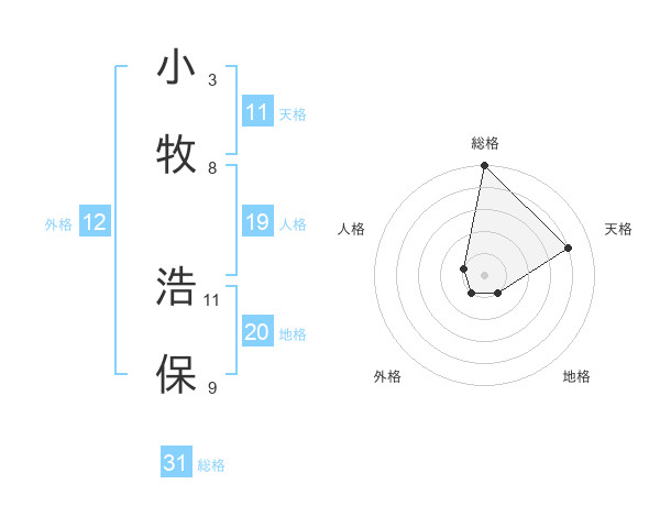 小牧 浩保さんを姓名の画数から五運を鑑定