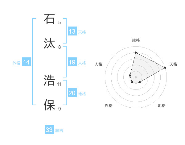 石汰 浩保さんを姓名の画数から五運を鑑定