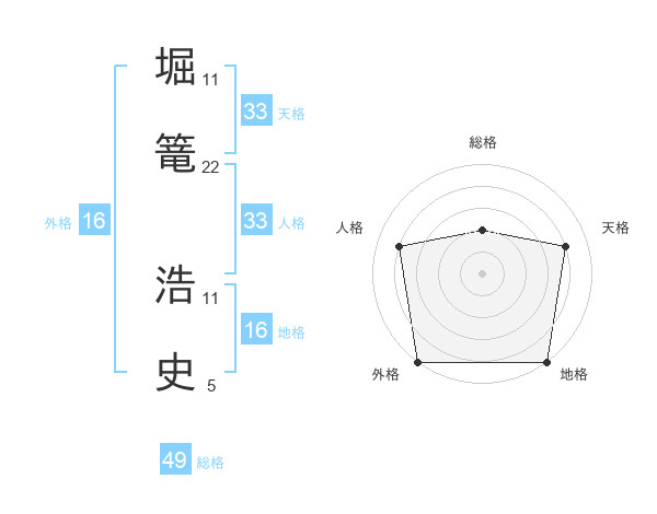 堀篭 浩史さんの総格は49画の2点!