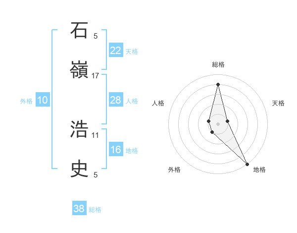 石嶺 浩史さんを姓名の画数から五運を鑑定