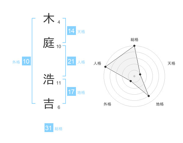 木庭 浩吉さんの総格は31画の5点!