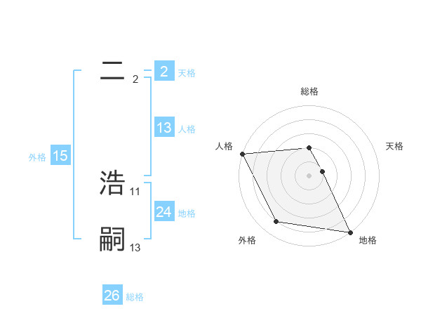 二 浩嗣さんの総格は26画の2点!
