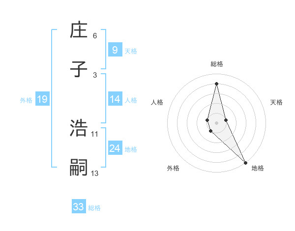 庄子 浩嗣さんの総格は33画の4点!