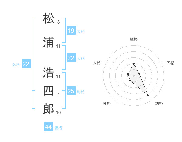 松浦 浩四郎さんの外格は22画の1点!