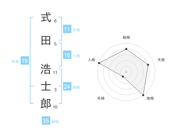 式田 浩士郎さんの総格は35画の4点!