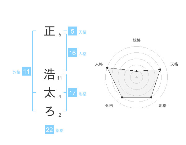 正 浩太ろさんを姓名の画数から五運を鑑定
