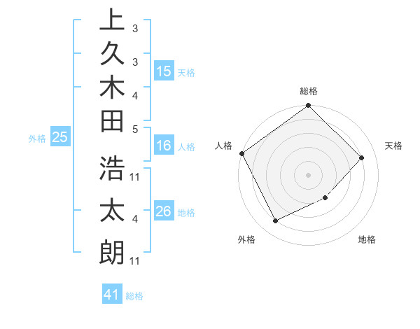 上久木田 浩太朗さんを姓名の画数から五運を鑑定