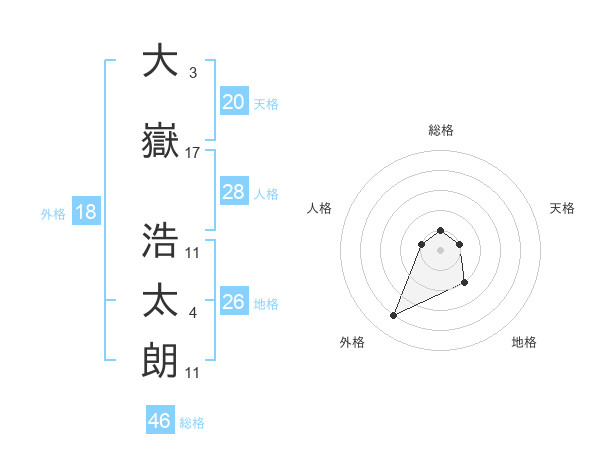大嶽 浩太朗さんを姓名の画数から五運を鑑定
