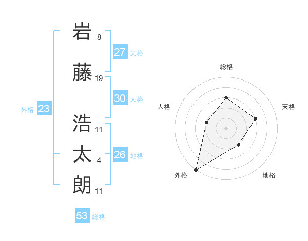 岩藤 浩太朗さんの総格は53画の3点!