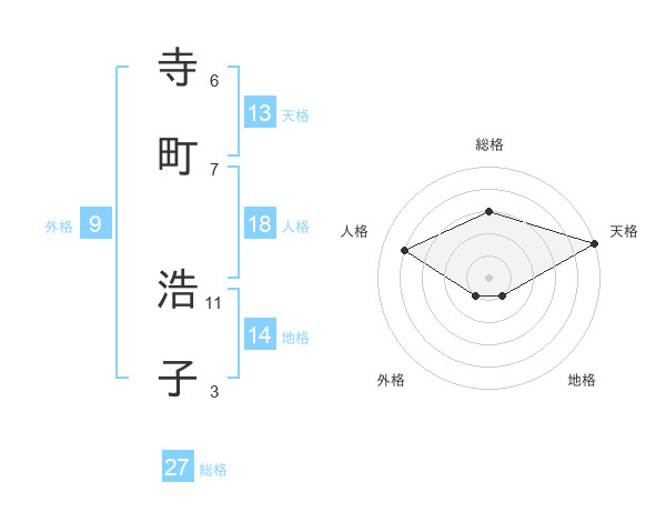 寺町 浩子さんの天格は13画の5点!
