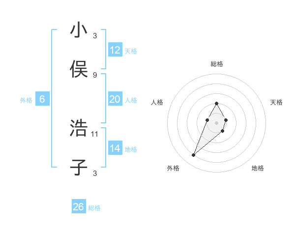 小俣 浩子さんの天格は12画の1点!