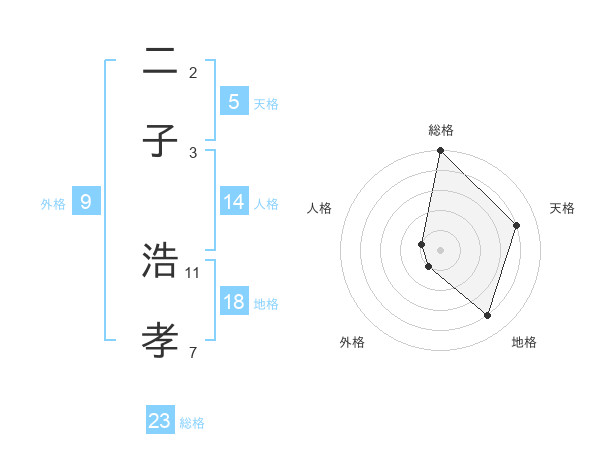 二子 浩孝さんを姓名の画数から五運を鑑定