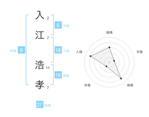 入江 浩孝さんの総格は27画の3点!