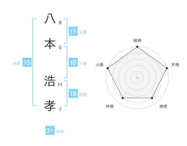 八本 浩孝さんを姓名の画数から五運を鑑定