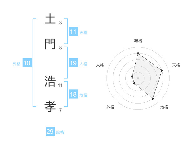 土門 浩孝さんの総格は29画の4点!