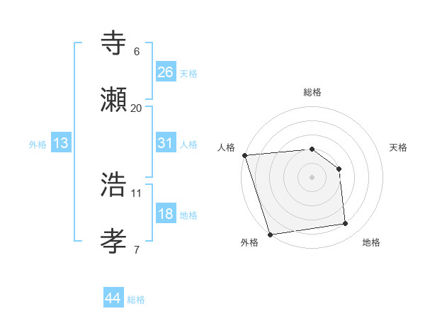 寺瀬 浩孝さんを姓名の画数から五運を鑑定