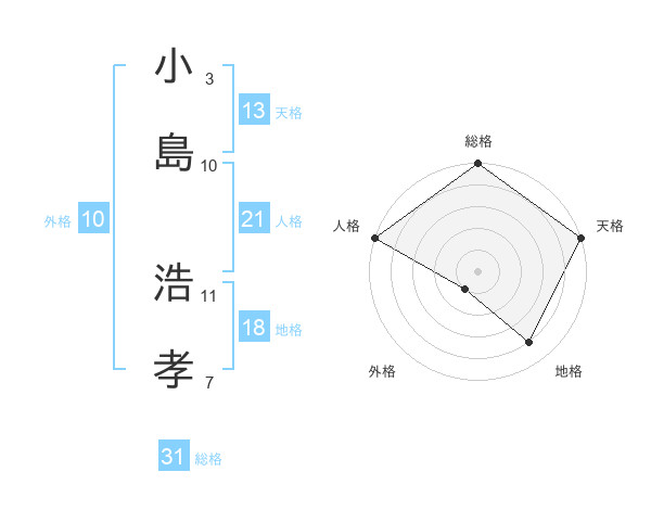 小島 浩孝さんの総格は31画の5点!