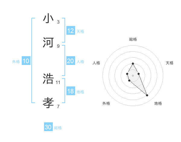 小河 浩孝さんの総格は30画の2点!