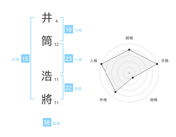 井筒 浩將さんの総格は38画の4点!