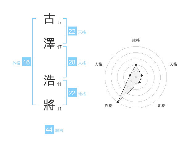古澤 浩將さんの外格は16画の5点!