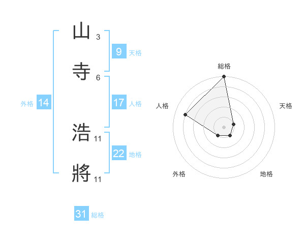 山寺 浩將さんを姓名の画数から五運を鑑定