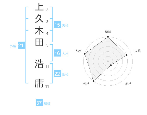 上久木田 浩庸さんを姓名の画数から五運を鑑定