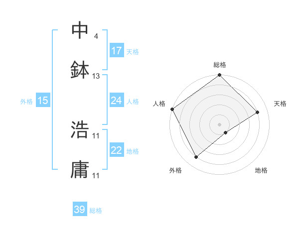 中鉢 浩庸さんを姓名の画数から五運を鑑定