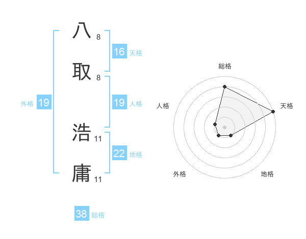 八取 浩庸さんを姓名の画数から五運を鑑定