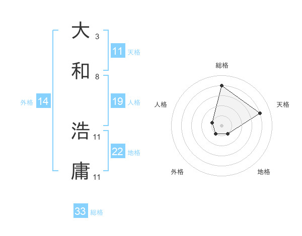 大和 浩庸さんの総格は33画の4点!