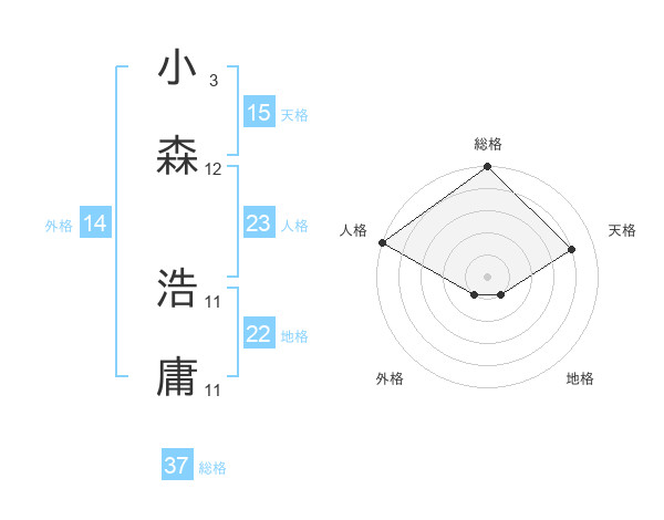 小森 浩庸さんの総格は37画の5点!