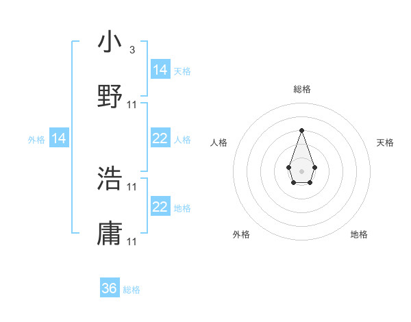 小野 浩庸さんを姓名の画数から五運を鑑定