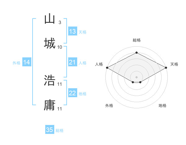 山城 浩庸さんを姓名の画数から五運を鑑定