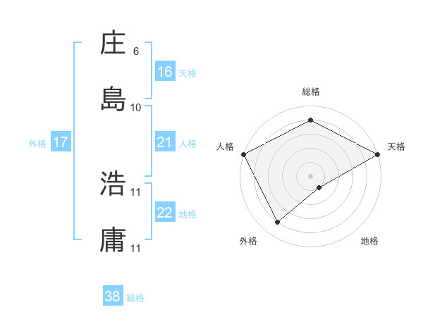 庄島 浩庸さんの総格は38画の4点!