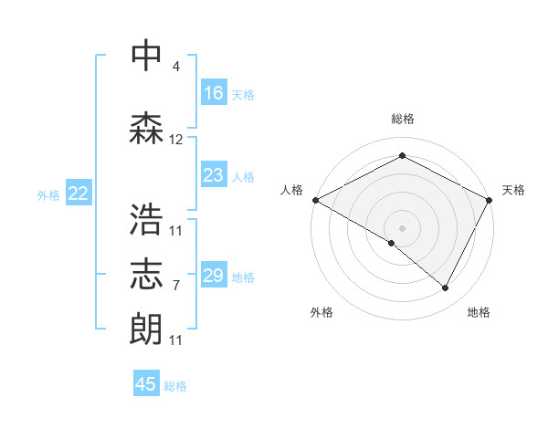 中森 浩志朗さんを姓名の画数から五運を鑑定