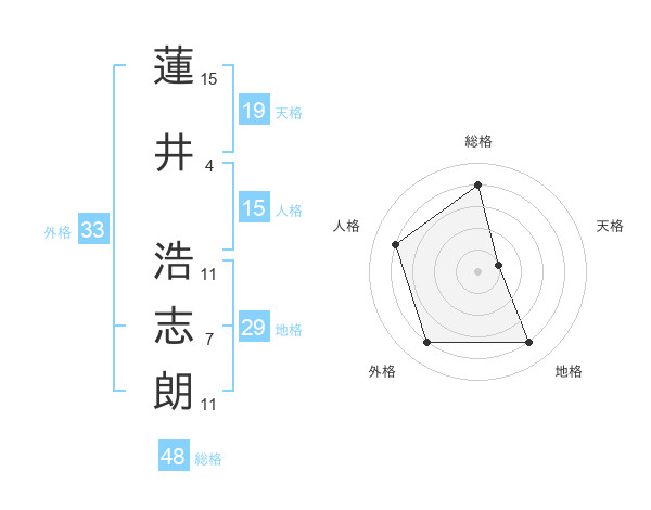 蓮井 浩志朗さんの外格は33画の4点!