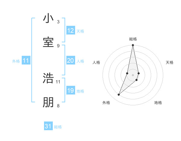 小室 浩朋さんを姓名の画数から五運を鑑定