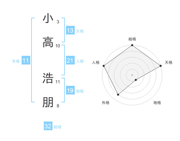小高 浩朋さんを姓名の画数から五運を鑑定