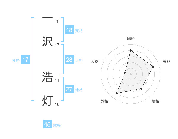 一沢 浩灯さんを姓名の画数から五運を鑑定