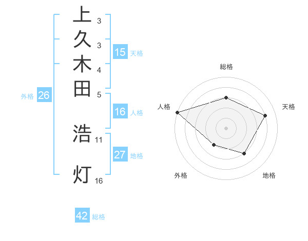 上久木田 浩灯さんを姓名の画数から五運を鑑定