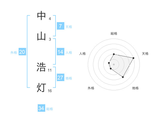 中山 浩灯さんの総格は34画の2点!